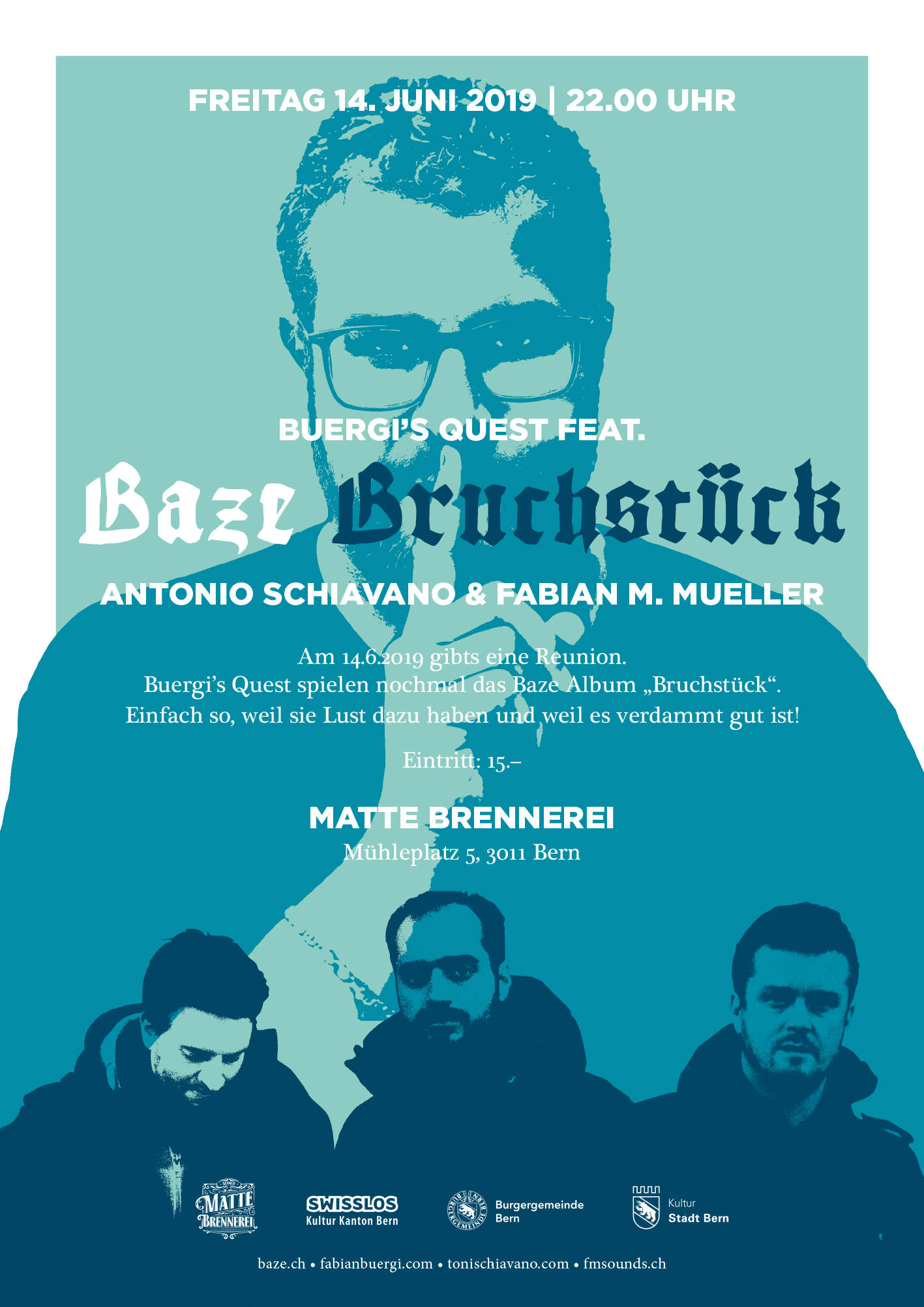 Buergi’s Quest feat. Baze Bruchstück Am 14.6.2019 gibts eine Reunion. Buergi’s Quest spielen nochmal das Baze „Bruchstück“ Album. Einfach so, weil sie Lust dazu haben und weil es verdammt gut ist! Teilen mit: Klicke, um auf X zu teilen (Wird in neuem Fenster geöffnet) X Klick, um auf Facebook zu teilen (Wird in neuem Fenster geöffnet) Facebook Gefällt mir Wird geladen …